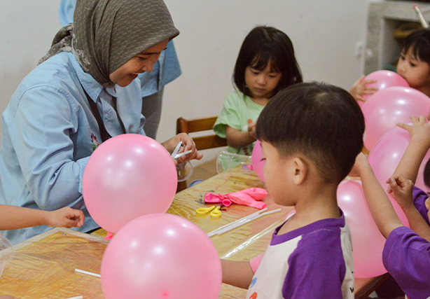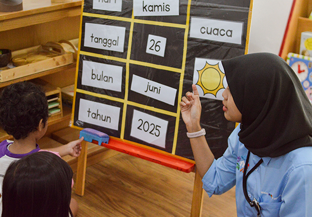 Anak dikenalkan pada aktivitas yang merangsang rasa ingin tahu. Mulai dari sensori play, eksperimen sederhana, hingga seni. Semua dirancang untuk jadi pengalaman belajar yang menyenangkan.